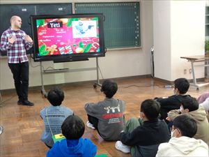 続いては「ALTalk Day」。他校のALTの皆さんに来ていただき、どっぷりと英語にひたる時間です。3年生から6年生までが取り組みました。5年生と6年生の授業の様子を紹介します。