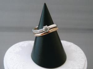 美しい曲線を四角い基調のダイヤが彩る、2色から成るプロポーズリング...