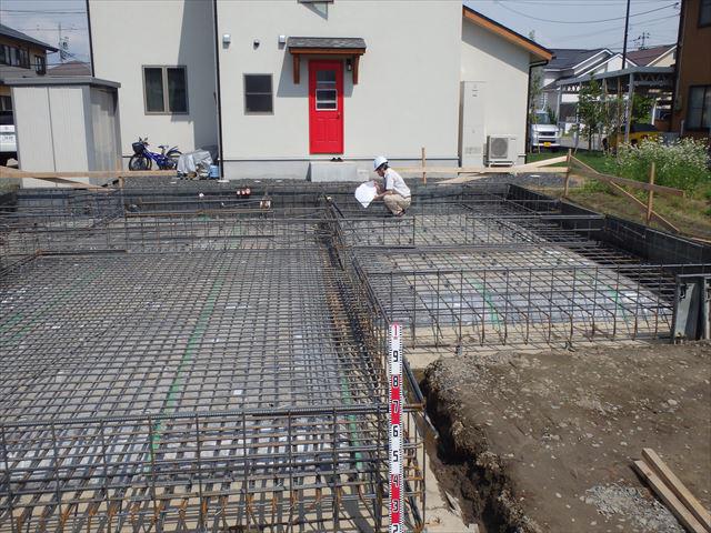 鉄筋配筋終わり、本日鉄筋検査受けました。