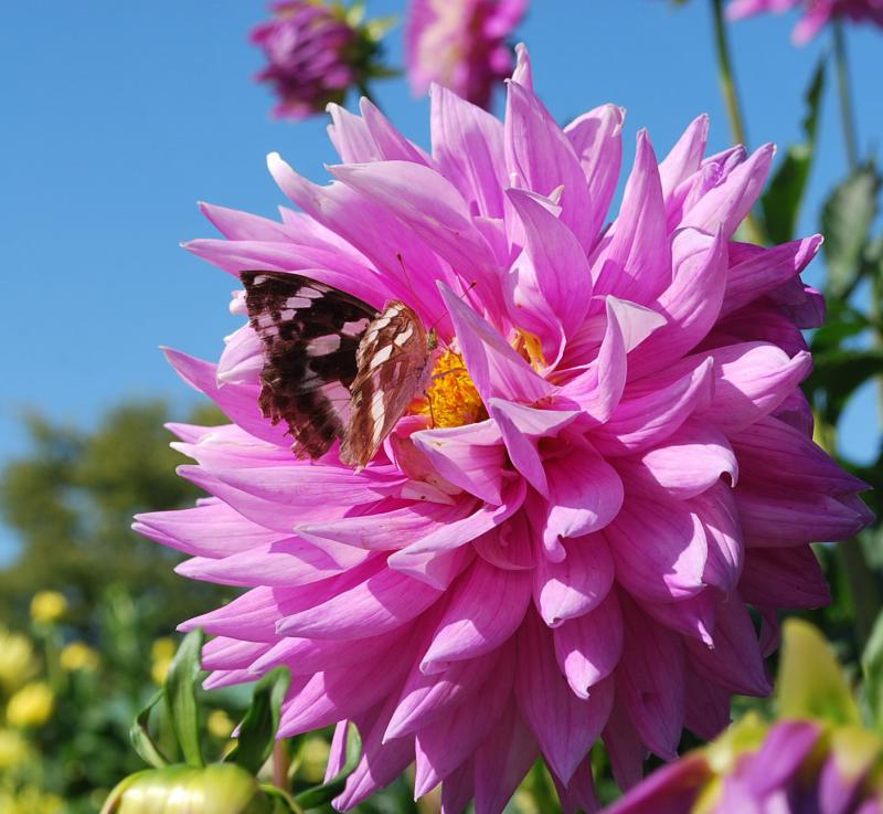 秋空に大きく咲くダリア。
