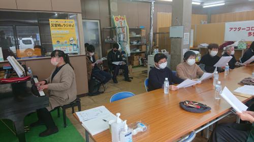 日本郵便年賀寄付金配分事業で進めてきた「アフターコロナ時代に挑戦する高齢世代が孫世代と創る多世代共生のまちなか支え合い事業」の柱になっている元気塾は、高齢者の集いと語らの場設営や声かけ運動、防災活動を目的に実施してきた。特に、空き店舗をリニューアルした施設での百歳体操は、まちなかの4会場を確保し3月22日に91回目を迎えた。今回は米沢市の森直子さんをお迎えして「歌声喫茶」と「百歳体操」を行い、コロナ禍の中、互いの元気と健康を確認し合った。この日は、置賜農業高校の生徒も参加し、多世代交流も実現した。