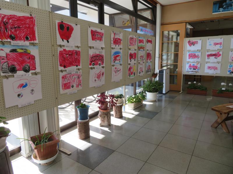 秋の火災予防運動に合わせて、消防車両の絵を「たかはたこども園」の