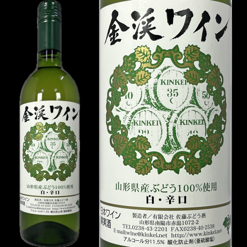 佐藤ぶどう酒の佐藤和洋です。品切れしていました、金渓ワイン・白・辛口の再発売を致しましたのでご案内いたします。750mlと1800mlの両方です。2025年産の山形県産ぶどう100%使用した金渓ワイン(白)辛口は、フルーティーな味わいが特徴のワインです。土地の恵みを最大限に引き出し、上質なワインの味わいにできました。ラベルとのギャップが激しいです(笑)このワインは、デラウェア種のぶどうを使用しているため、爽やかでフレッシュな酸味が楽しめます。辛口という特徴もあり、後味のキレが良く、食事との相性も抜群です。そのフルーティーな香りとシャープな味わいから、食前酒としてお楽しみ頂くのもおすすめです。また、食中は、軽いおつまみや魚料理、サラダなどの軽めの料理との相性が良く、美味しい時間を演出してくれます。金渓ワイン(白)・辛口 は、山形の風土が生み出す逸品。ワイン愛好家やギフトをお探しの方にもぜひおすすめしたい一品です過去の実績:2011年国産ワインコンクール銅賞受賞価格:1,562(税込)タイプ:白・辛口内容量:750mlアルコール:11.5%公式HP https://www.kinkei.net
