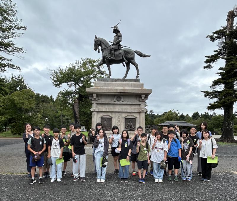 仙台に到着し、はじめの見学地の青葉城址へ。みんな元気です。天気も雨上がりで暑くありません。