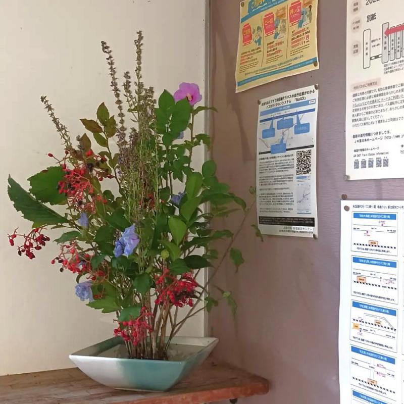 ●『米坂線の今』沼沢駅の1 待合室の活け花