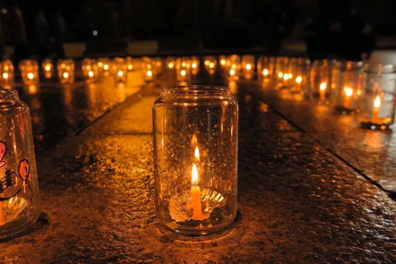 コロナウイルス対策のため残念ながら中止となりましたが、急遽、県が主催して100本ほどのキャンドルで小さな祈りの場を設けることになり協力いたしました。