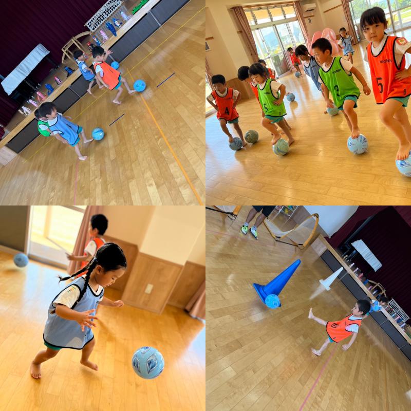 ドリブルをしながらの「だるまさんがころんだ」は子どもたちも大喜びでした!