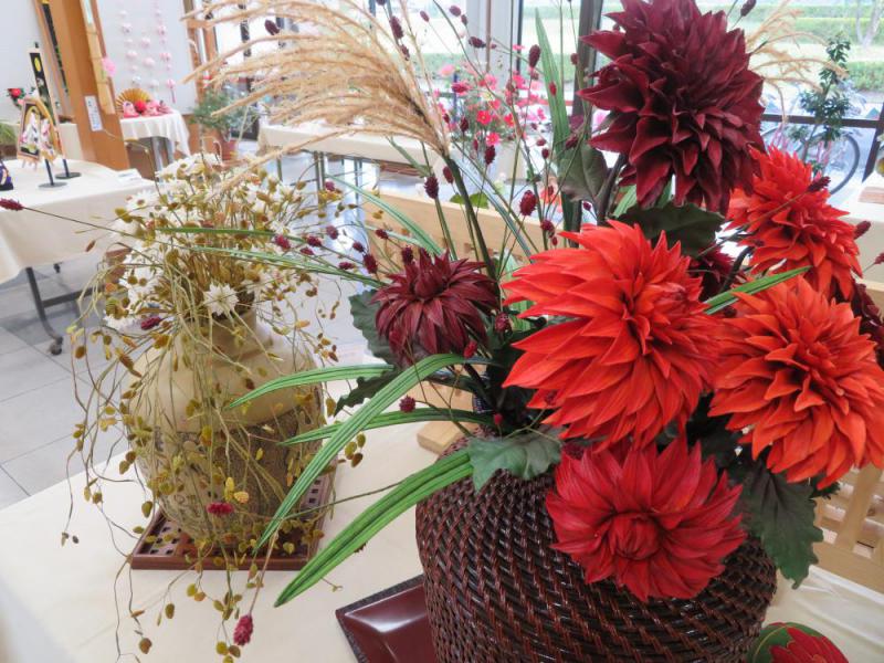 10月後半の館内展示は、高畠町塩森出身、現在山形市在住の漆山 文子(うるしやま ふみこ)さんの作品展、「樹脂粘土と布あそび」 です。30年余り前に本を見ながら紙粘土で壁掛け人形を作ったのがきっかけで、退職後、樹脂創作粘土に出会い、その後14年余り趣味で製作されているそうです。展示されている粘土細工は、ガラス、金属、陶器以外はすべて樹脂粘土による作品で、花弁はもちろん葉や茎に至るまで粘土で作り、油絵の具で色付けしているとのこと。布で作る「押絵」も製作しているそうです。心がなごみ、本物と見間違うほどの素晴らしい作品の数々を、みなさんぜひご覧ください♪●期間 令和5年10月17日(火)〜 30日(月)●時間 9:00〜17:30