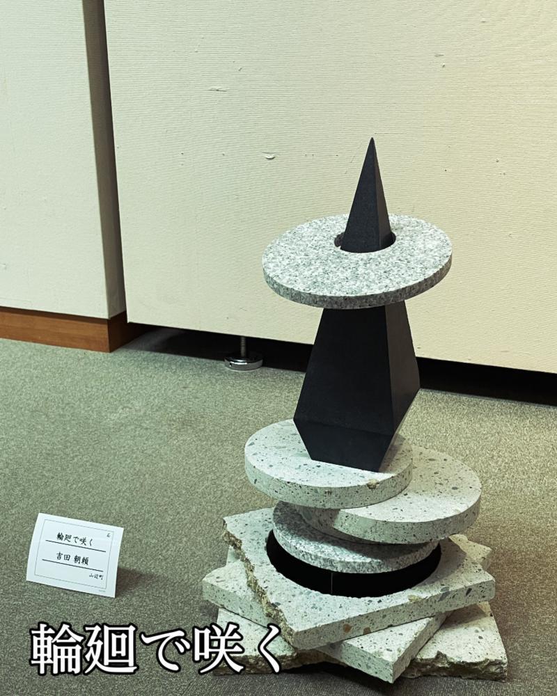 県美展2024に弊社スタッフが出品・展示させていただいた作品を小出し(?)に紹介させていただきたいと思います??♂?今回は私、吉田朝頼が製作のタイトル『輪廻で咲く』になります。見て形の如く、円(縁?)をテーマにした作品にさせていただき製作に取り組みました。タイトルを考える際に最初は『輪廻の花』を考えていたのですが、なんとなく検索したら同名の漫画?アニメ?が存在していましたので変えました!私の近い家族に言われるのですが、「数学的な作品を造ることが多いね」と