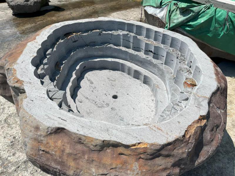 制作中の石風呂です。専用の機械で石を切断して掘削した状態になります。この後は工具を使って手作業で削っていきますが、とても根気と体力のいる工程になります。石の粉塵が勢いよく舞い上がるので防塵マスクは必須です。どんな石風呂が出来上がるのか楽しみにしながら創っていこうと思います。 一つとして同じ表情の無い蔵王の天然石から削り出す石風呂。永い年月の中で石に蓄えられたパワーは心と身体に癒しを与えてくれます。____それはまさに自然からの贈り物。株式会社ざおうコーポレーション 石材部門では蔵王の天然石を使った石風呂を制作・販売しています。ご興味がございましたらぜひ一度展示場へお越しください。https://zao-stone.jp