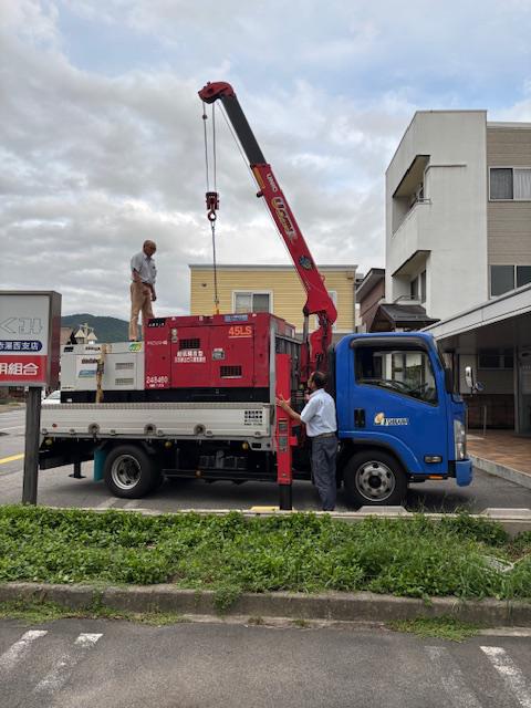 11日の夕方、発電機の設置。 「なんだか大雑把なんじゃない〜」と思って作業を見ていたら…、大変失礼いたしました。うま〜く着地をしました。